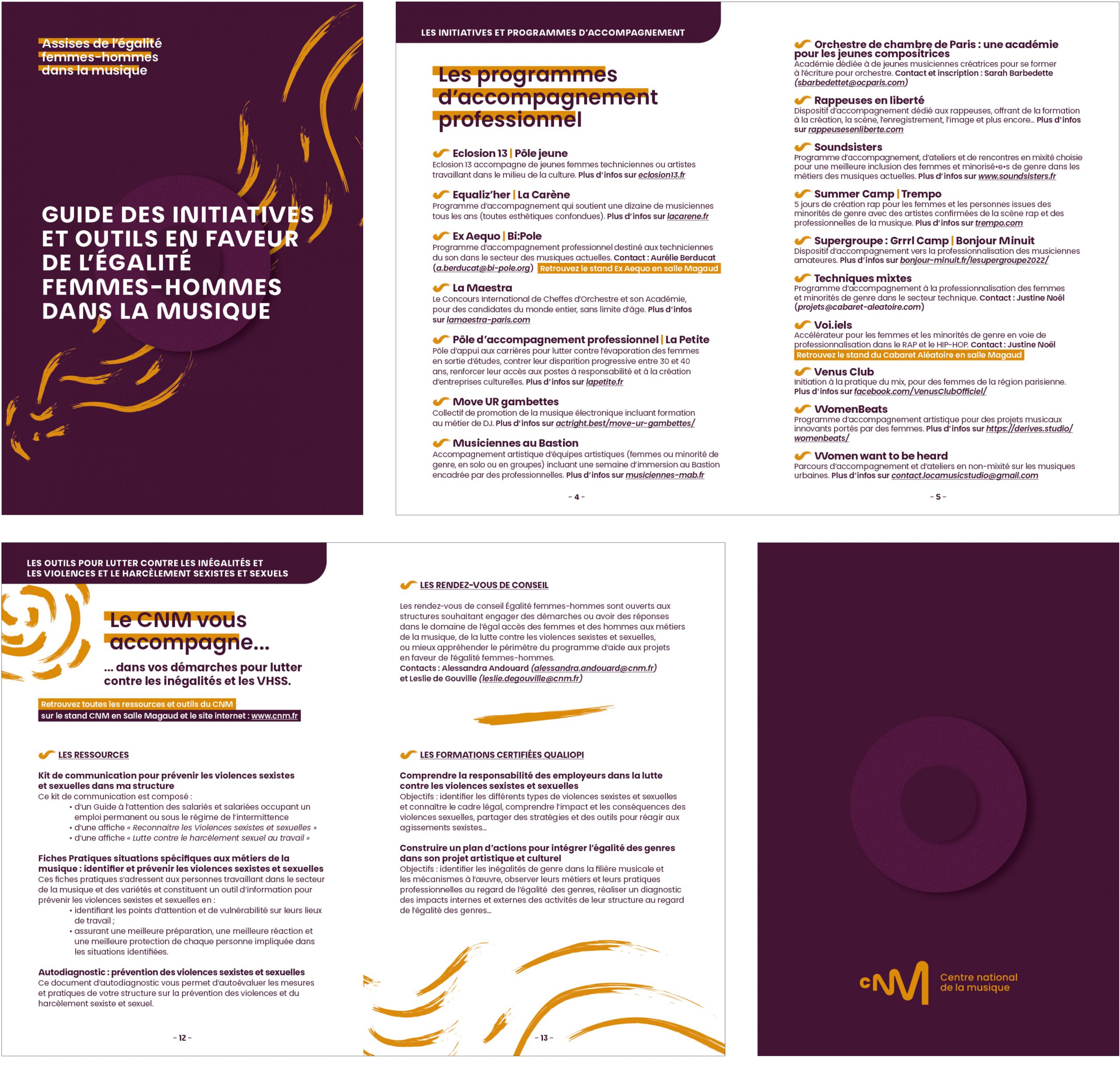 • Guide des initiatives et outils en faveur de l’égalité Femmes-Hommes dans la musique (16 pages)
