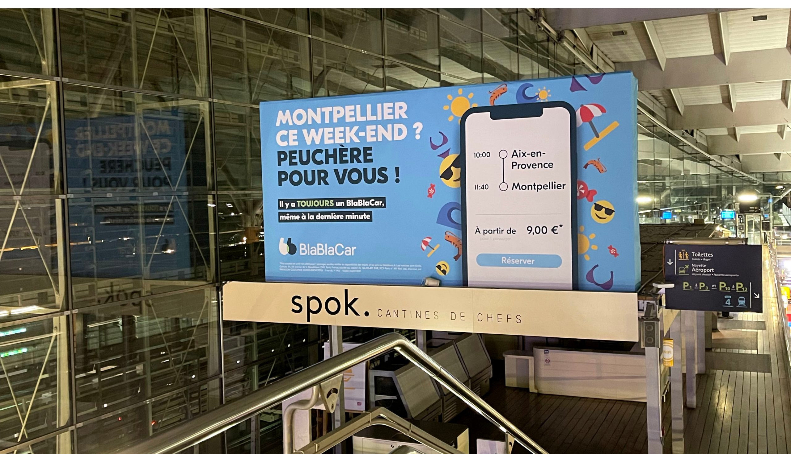 Event BlaBlaCar décliné dans plusieurs grandes gares de France (Paris, Aix, Marseille, Angers, Lille, Bordeaux, Clermont, Nantes, Reims, Rennes, Rouen, Toulouse…) : une cinquantaine de supports grands formats.